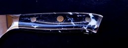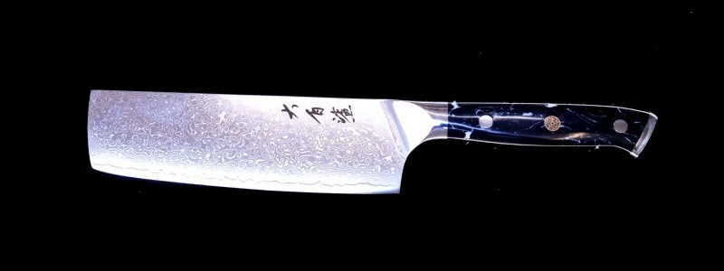Das Nakiri Messer von Jaws ist für jene bestens geeignet, die gerne Gemüse frisch zubereiten. Die breite Klinge ermöglicht ein handliches professionelles Arbeiten. Das Profi-Kochmesser wird aus einem speziell entwickelten, rostfreien Damaszener-Stahl mit 64 Lagen gefertigt. Die innere Lage besteht aus VG10 Stahl. Dieser Stahl ist äusserst korrosionsbeständig, extrem hart (61+/-HRC, 1.0% Kohlenstoff, 1.5%Kobalt) und hält die Klinge, bei entsprechender Pflege, dauerhaft scharf. Das Messer ist sehr gut ausgewogenen und erlaubt ermüdungsfreies Arbeiten.