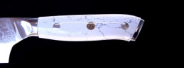 Es liegt sehr gut in der Hand und macht wirklich Freude damit zu arbeiten. Unser Messer wird bei Profiköchen wie auch ambitionierten Hobbyköchen sehr geschätzt. Für Fleisch, Fisch und Gemüse geeignet.Die Klinge ist aus rostfreiem Damaszener-Stahl mit 128 Lagen gefertigt. Die innere Lage besteht aus gehärtetem Stahl (61+/-HRC) und hält die Klinge bei entsprechender Pflege, dauerhaft scharf. Griffstück aus rostfreien Stahl und Olivenholz.